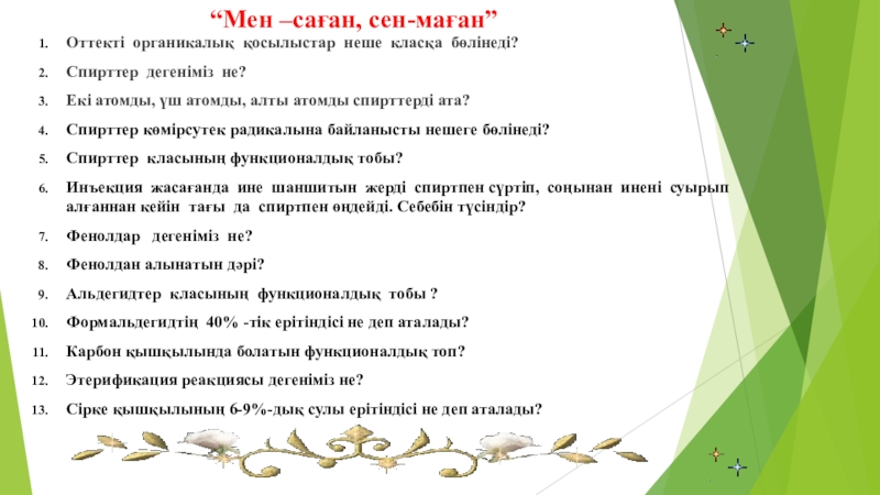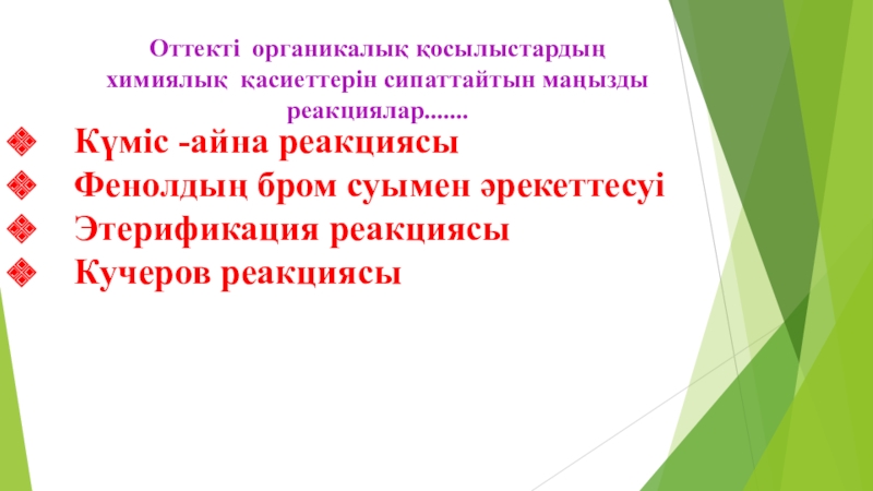 Оттекті органикалық қосылыстардың химиялық қасиеттерін сипаттайтын маңызды реакциялар.......