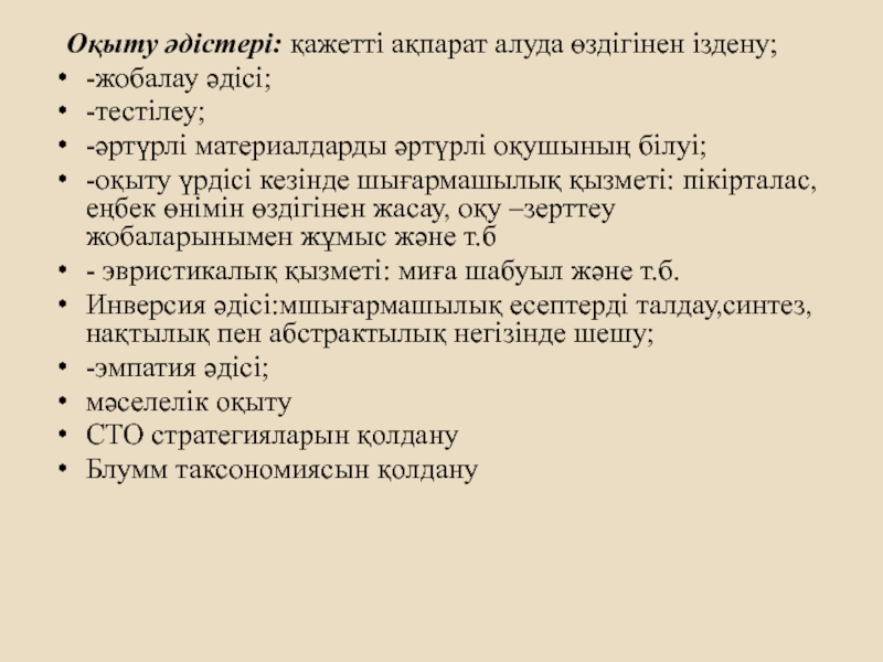 Слайд 23 Оқыту әдістері: қажетті ақпарат алуда өздігінен іздену;