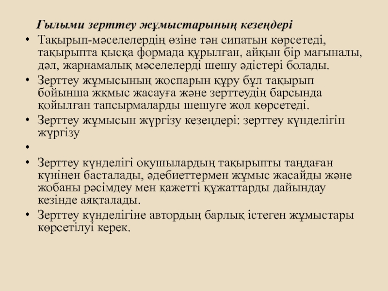 Слайд 26 Ғылыми зерттеу жұмыстарының кезеңдері