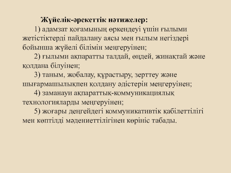 Слайд 10 Жүйелік-әрекеттік нәтижелер: