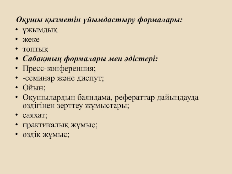 Слайд 24 Оқушы қызметін ұйымдастыру формалары: