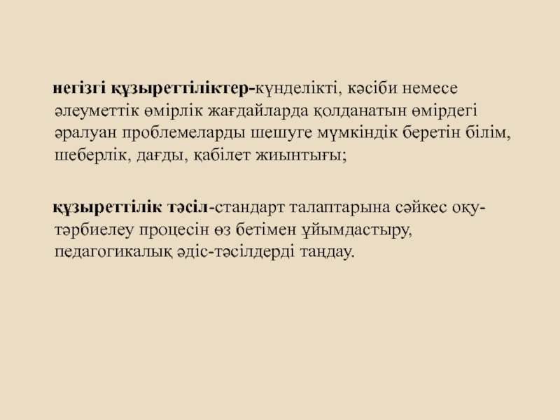 Слайд 8 негізгі құзыреттіліктер-күнделікті, кәсіби немесе әлеуметтік өмірлік жағдайларда қолданатын өмірдегі