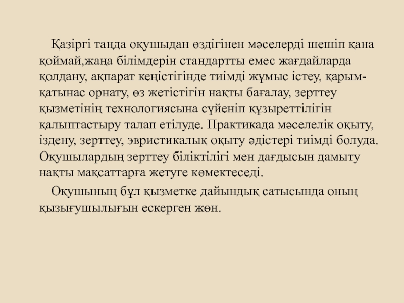 Слайд 12 Қазіргі таңда оқушыдан өздігінен мәселерді шешіп қана