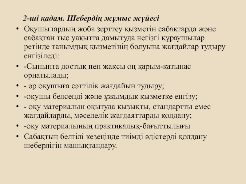 Слайд 22 2-ші қадам. Шебердің жұмыс жүйесі
