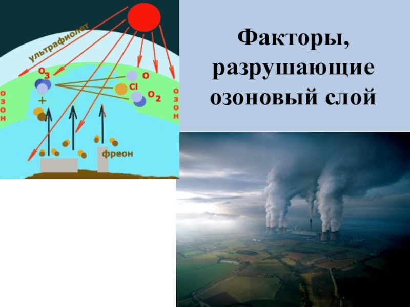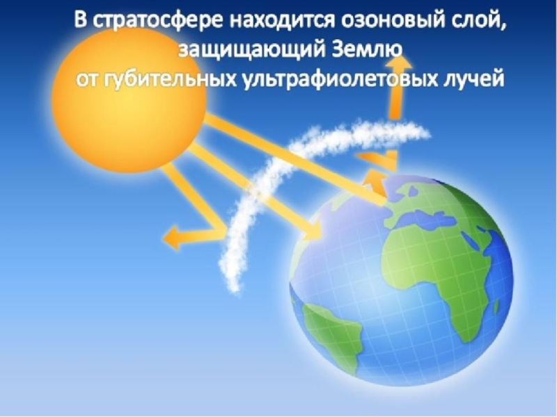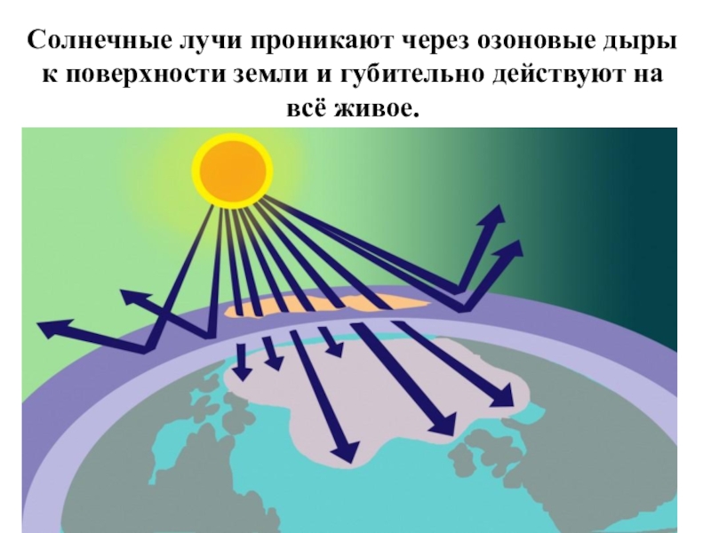 Слайд 9 Солнечные лучи проникают через озоновые дыры к поверхности земли и губительно