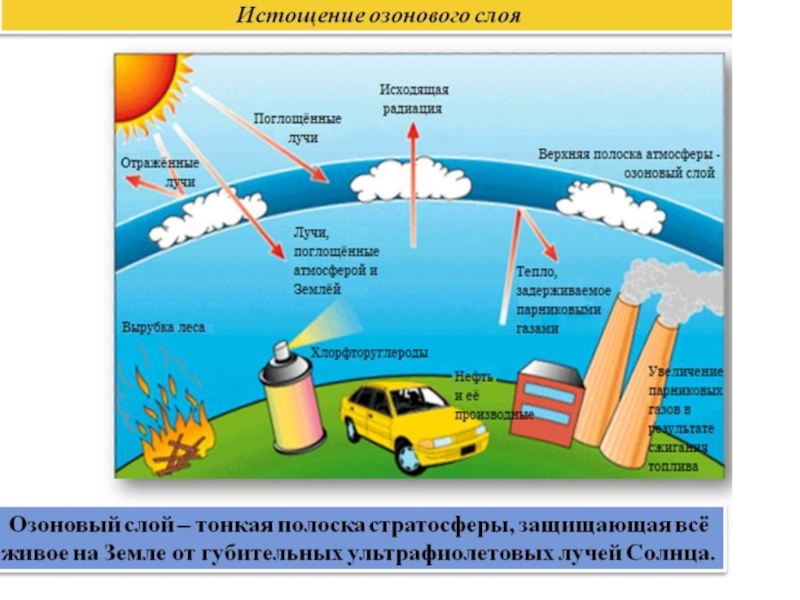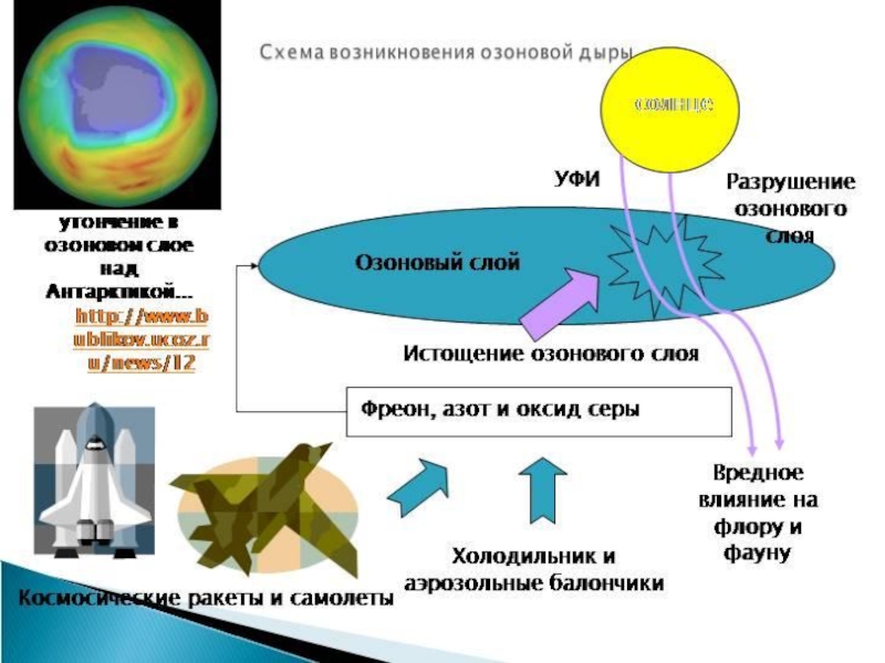 Солнечные лучи проникают через озоновые дыры к поверхности земли и губительно действуют на всё живое.