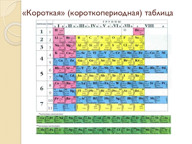 Слайд 17«Короткая» (короткопериодная) таблица