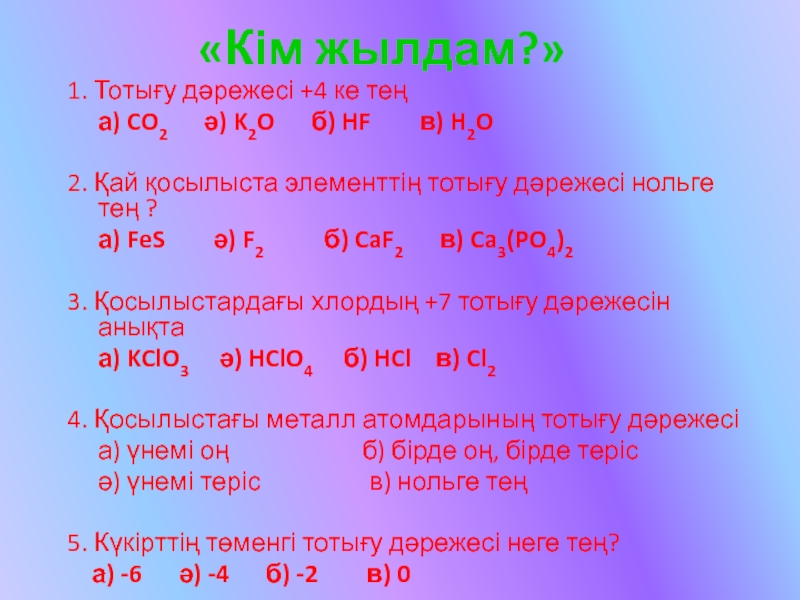 2. Қай қосылыста элементтің тотығу дәрежесі нольге тең ?