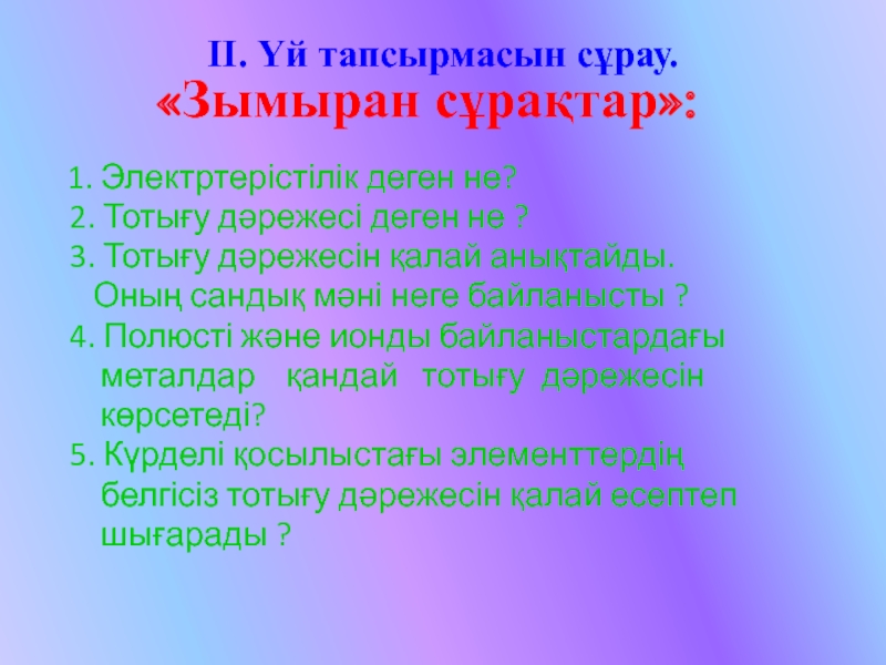 Слайд 15«Ерігіштік» тобының сұрақтары: