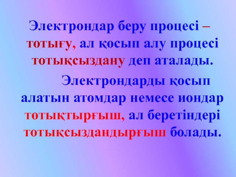 Электрондарды қосып алатын атомдар немесе иондар тотықтырғыш, ал беретіндері тотықсыздандырғыш болады.