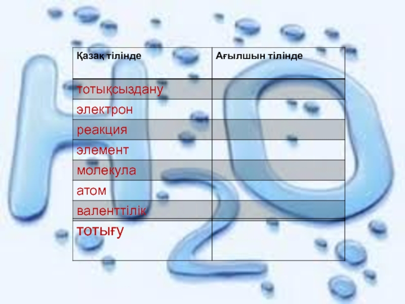 Дамытушылық: Су, басқада химиялық заттардың формулаларын, валенттіліктерін жазып үйрену;