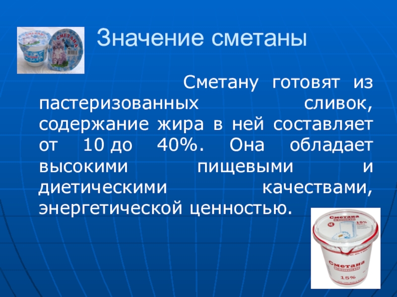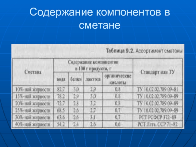 пастеризованных сливок, содержание жира в ней составляет от 10 до 40%. Она обладает высокими пищевыми и диетическими качествами, энергетической ценностью.