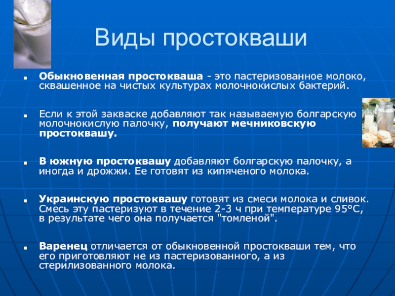 густое закисшее молоко. В основе приготовления простокваши лежит сквашивание пастеризованного молока на чистых культурах молочнокислых бактерий.
