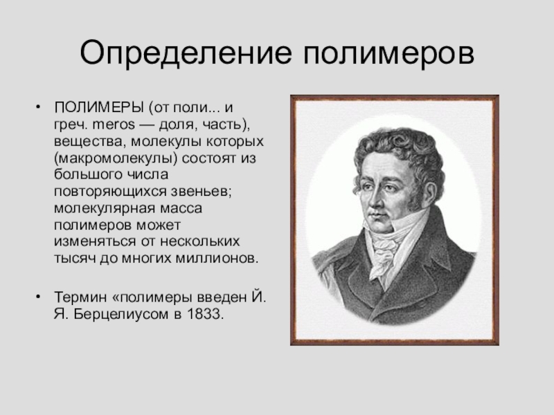 Термин «полимеры введен Й. Я. Берцелиусом в 1833.