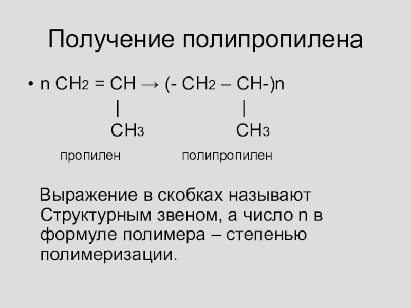 Выражение в скобках называют Структурным звеном, а число n в формуле полимера – степенью полимеризации.