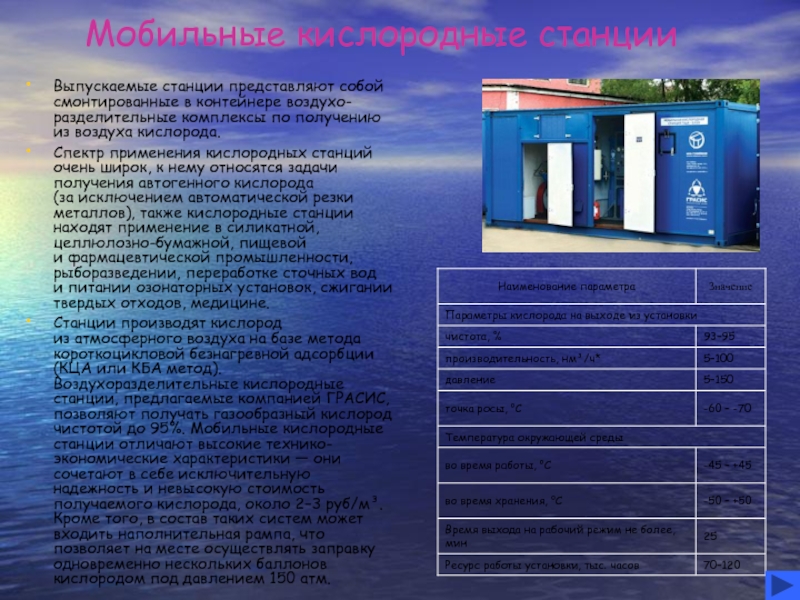 Компания ГРАСИС производит на базе мембранной технологии высокоэффективные системы для получения кислорода из воздуха. Установки позволяют получать кислород чистотой до 50%, применение таких систем оказывается с экономической точки зрения очень эффективным. Заказчик получает воздух, обогащенный кислородом в требуемой концентрации (от 30 до 50%).