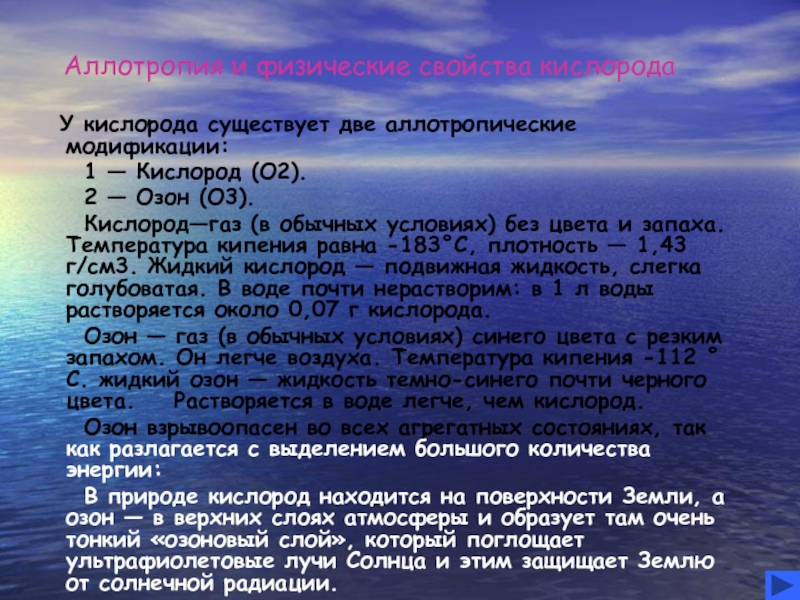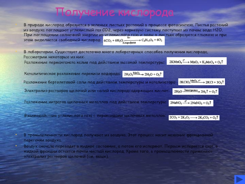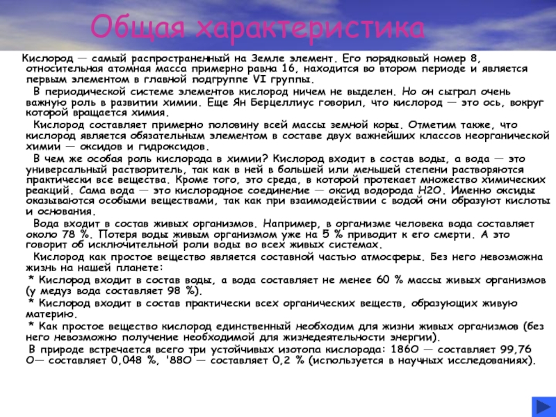Кислороду принадлежит исключительная роль в природе. При участии кислорода проходит такой нужный и важный процесс, как дыхание. Окисление органических веществ в живых организмах дает возможность получения необходимой им энергии.