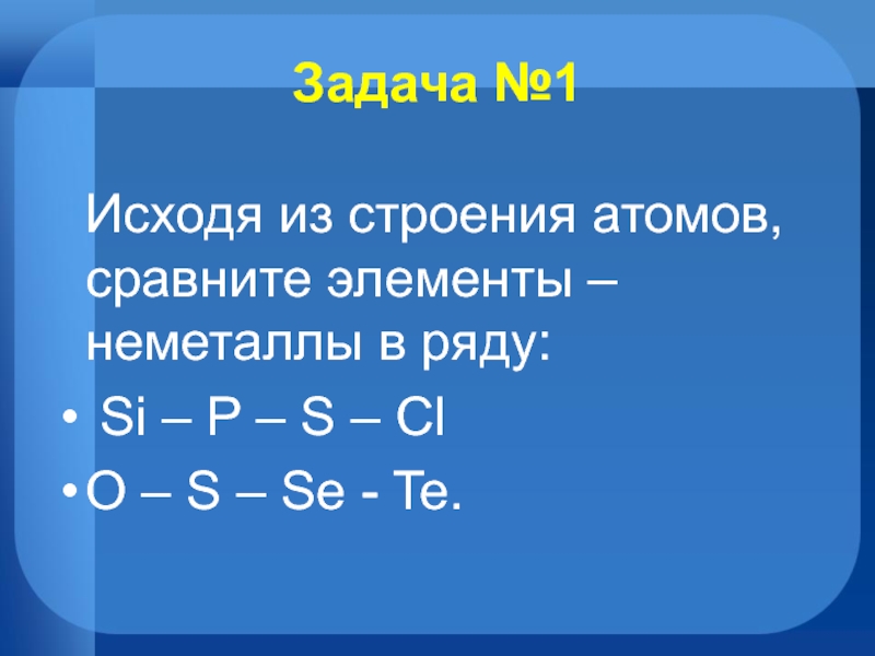 Задача №1 Исходя из строения атомов, сравните элементы – неметаллы в ряду: Si – P – S – ClO – S – Se - Te.