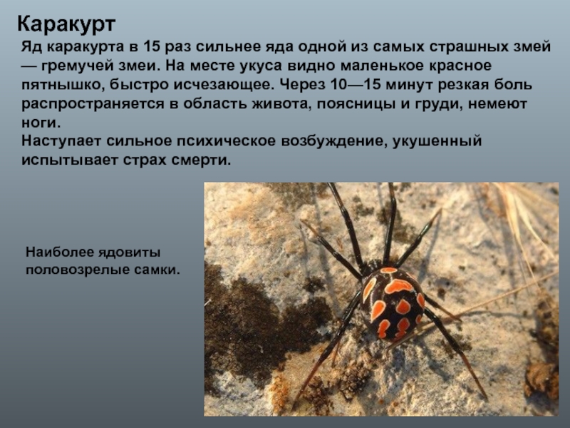 Наступает сильное психическое возбуждение, укушенный испытывает страх смерти.