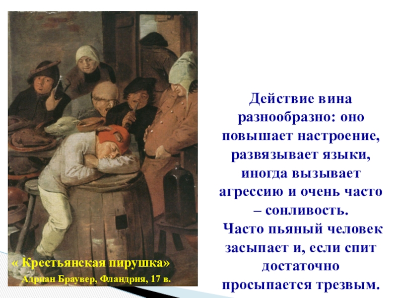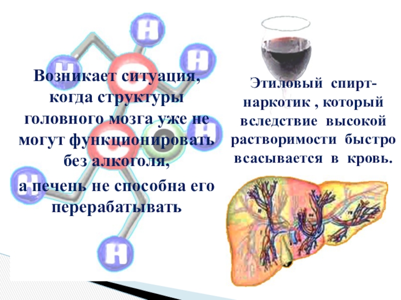 Этиловый спирт-наркотик , который вследствие высокой растворимости быстро всасывается в кровь.