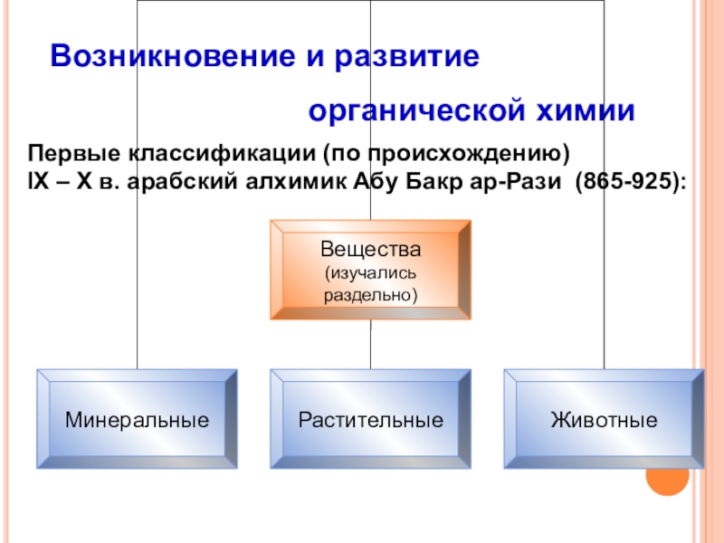 Первые классификации (по происхождению) IX – X в. арабский алхимик Абу Бакр ар-Рази (865-925):