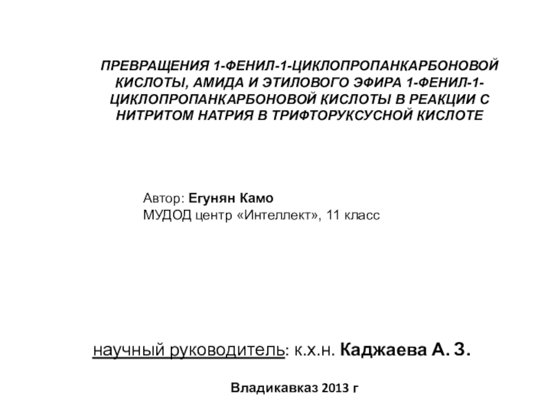 ПРЕВРАЩЕНИЯ 1-ФЕНИЛ-1-ЦИКЛОПРОПАНКАРБОНОВОЙ КИСЛОТЫ, АМИДА И ЭТИЛОВОГО ЭФИРА 1-ФЕНИЛ-1-ЦИКЛОПРОПАНКАРБОНОВОЙ КИСЛОТЫ В РЕАКЦИИ С НИТРИТОМ НАТРИЯ В ТРИФТОРУКСУСНОЙ КИСЛОТЕ