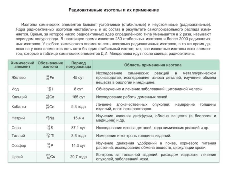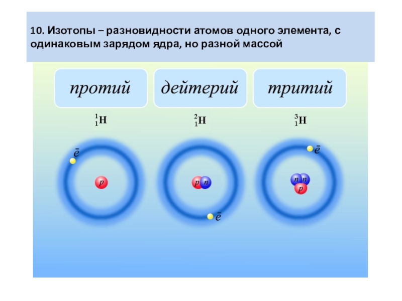 Слайд 810. Изотопы – разновидности атомов одного элемента, с одинаковым зарядом ядра,