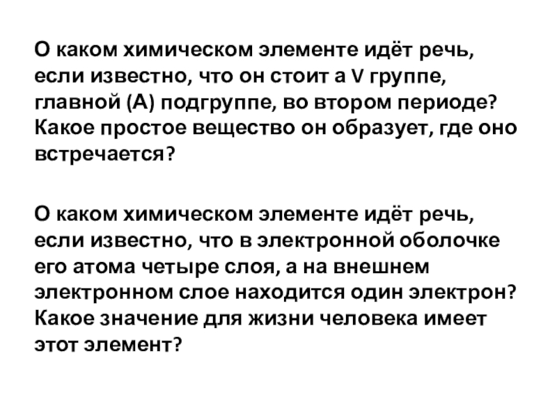 Слайд 28О каком химическом элементе идёт речь, если известно, что он стоит