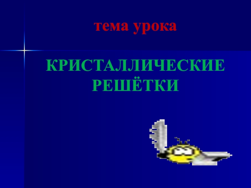 Слайд 1 тема урока КРИСТАЛЛИЧЕСКИЕ РЕШЁТКИ