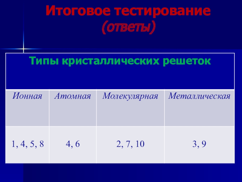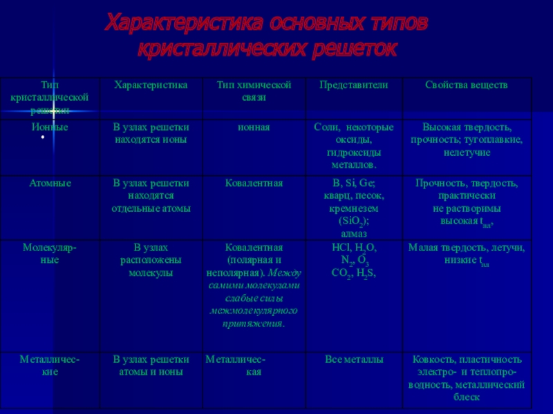 тема урока  КРИСТАЛЛИЧЕСКИЕ РЕШЁТКИ