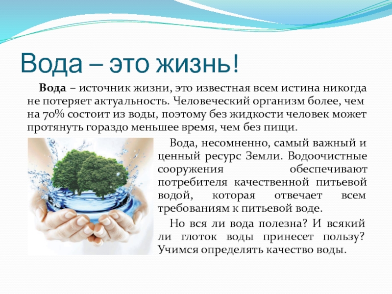 Слайд 2Вода – это жизнь!