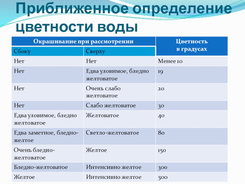 Слайд 7Приближенное определение цветности воды