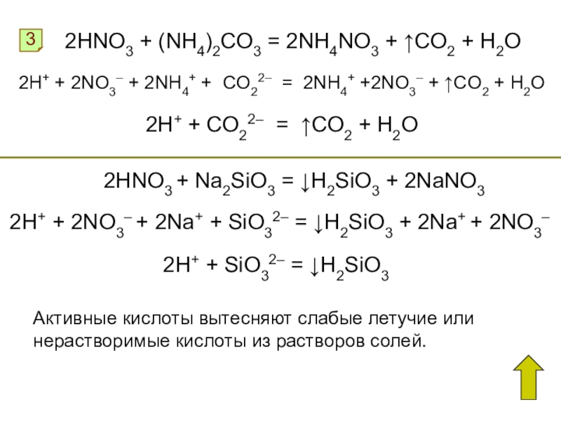 Активные кислоты вытесняют слабые летучие или