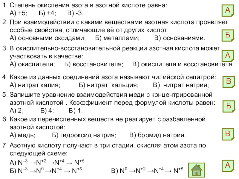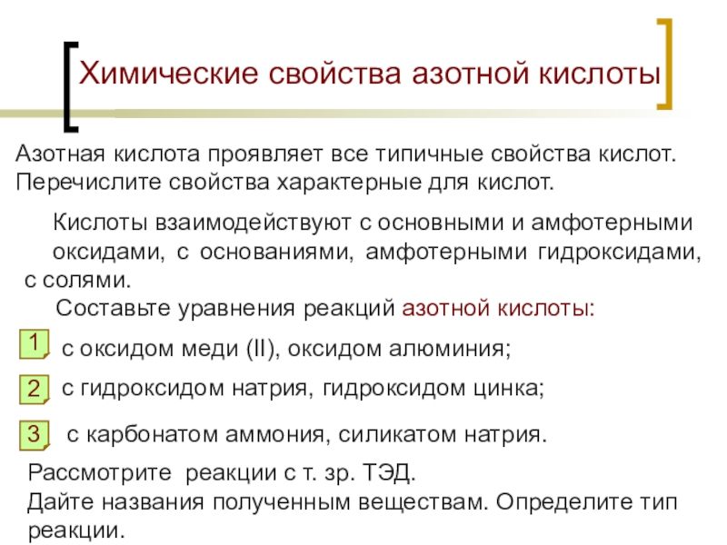 Составьте уравнения реакций азотной кислоты: