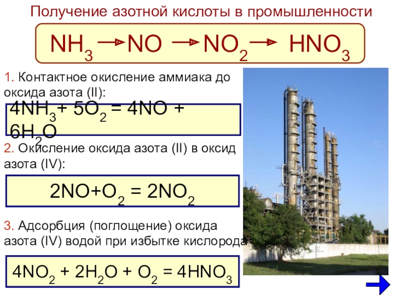 7. Азотную кислоту получают в три стадии, окисляя атом азота по