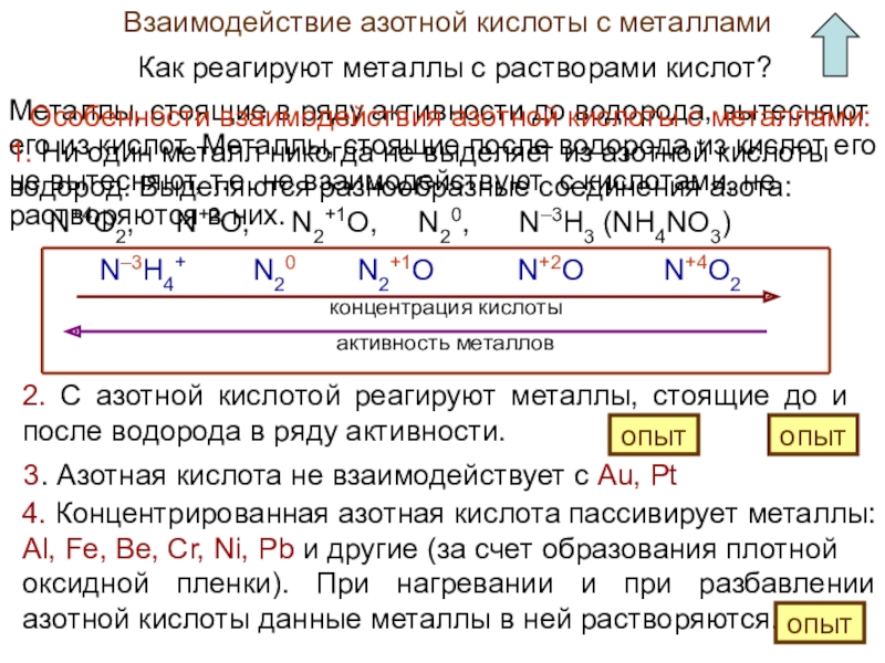 Особенности взаимодействия азотной кислоты с металлами: