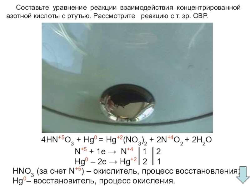 4HN+5O3 + Hg0 = Hg+2(NO3)2 + 2N+4O2 + 2H2O