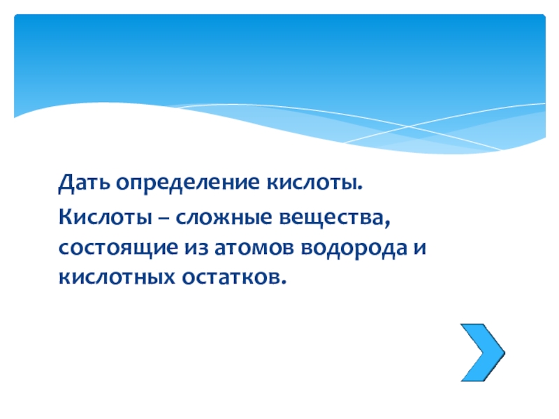 Слайд 6Дать определение кислоты.