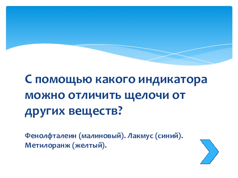 Слайд 18С помощью какого индикатора можно отличить щелочи от других веществ?