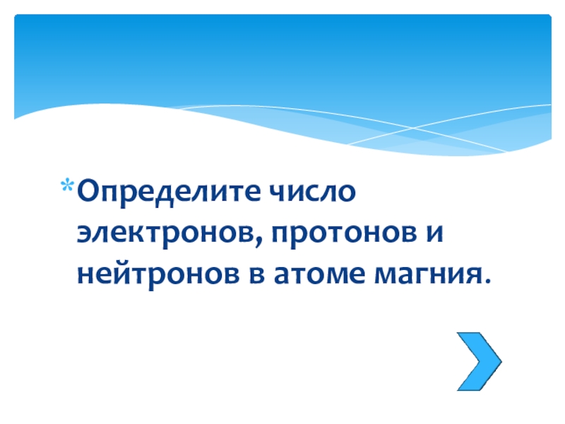 Слайд 31Определите число электронов, протонов и нейтронов в атоме магния.