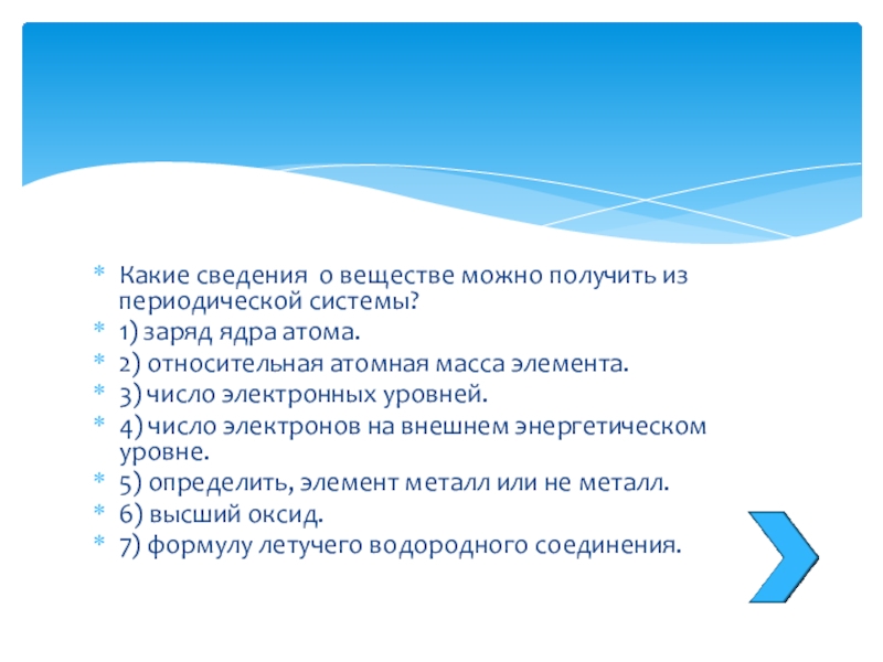Слайд 8Какие сведения о веществе можно получить из периодической системы?