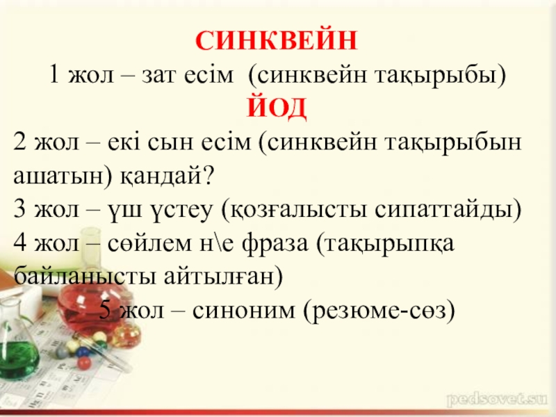 1 жол – зат есім (синквейн тақырыбы) ЙОД
