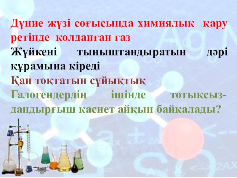 Слайд 8Дүние жүзі соғысында химиялық қару ретінде қолданған газ