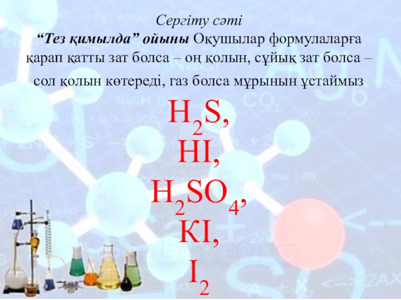 “Тез қимылда” ойыны Оқушылар формулаларға қарап қатты зат болса –