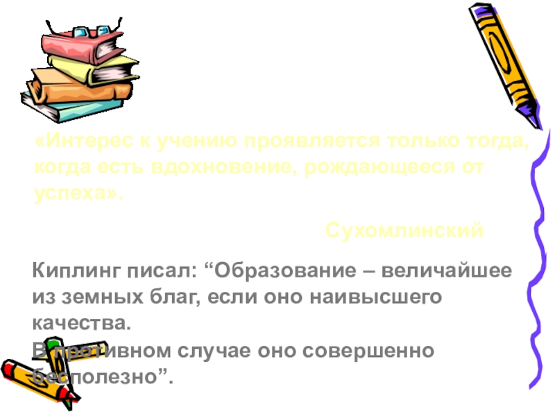 Киплинг писал: “Образование – величайшее из земных благ, если оно наивысшего качества.