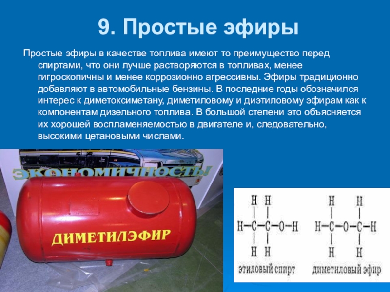Простые эфиры в качестве топлива имеют то преимущество перед