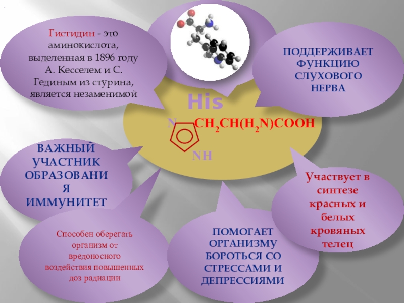 Гистидин - это аминокислота, выделенная в 1896 году А. Кесселем и С.Гединым из стурина, является незаменимой
