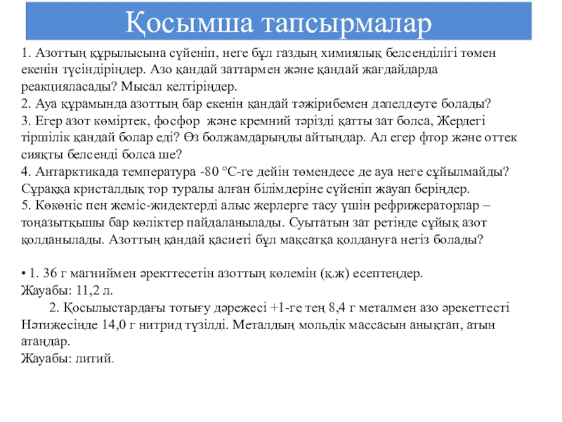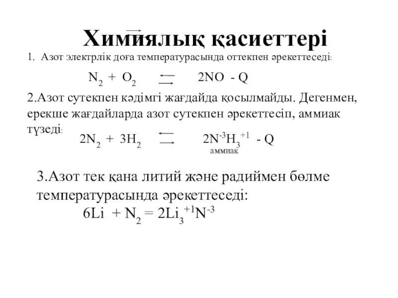 3.Азот тек қана литий және радиймен бөлме температурасында әрекеттеседі: