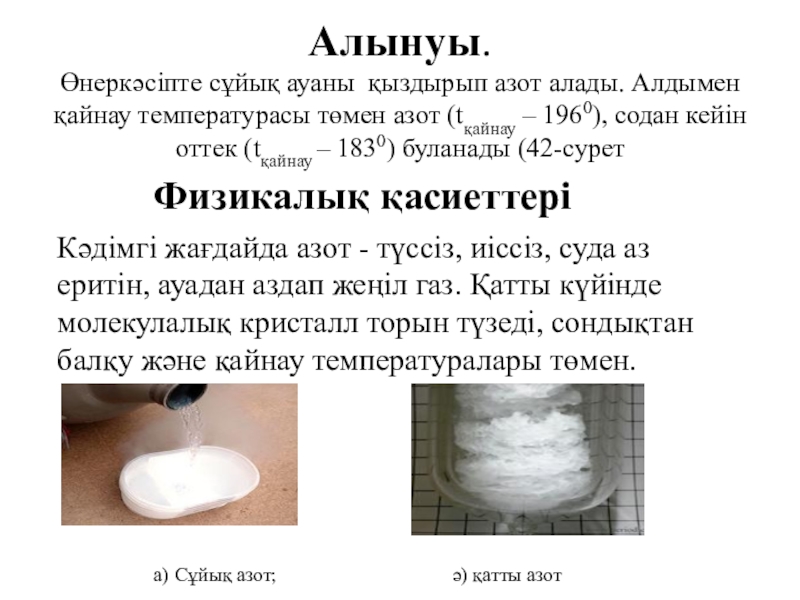 а) Сұйық азот; ә) қатты азот