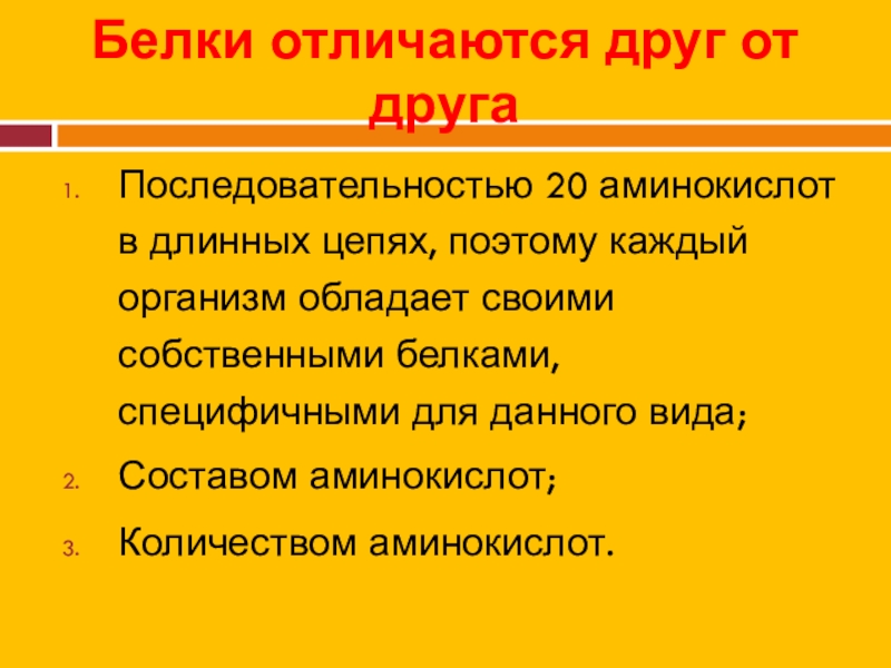 каждый организм обладает своими собственными белками, специфичными для данного вида;